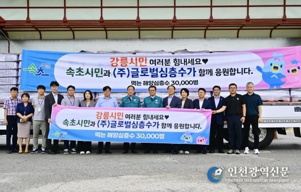 [인천광역신문] 관리자 기자 | 속초시는 최근 지속된 가뭄으로 식수난을 겪는 강릉시 주민들을 위해 ㈜글로벌심층수에서 생산하는‘먹는 해양심층수’ 3만 병(3천만 원 상당)을 긴급 지원했다.