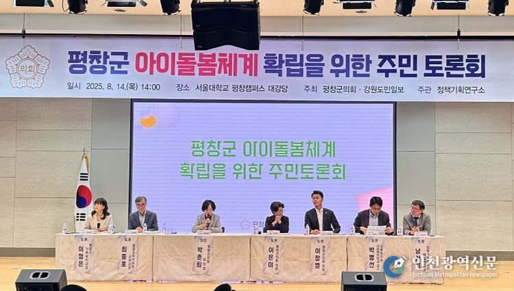 [인천광역신문] 관리자 기자 | 평창군의회(의장 남진삼)는 강원도민일보(사장 경민현)와 공동으로 오늘(14일) 14시 서울대학교 평창캠퍼스 대강당에서 '평창군 아이돌봄체계 확립을 위한 주민 토론회'를 개최했다.