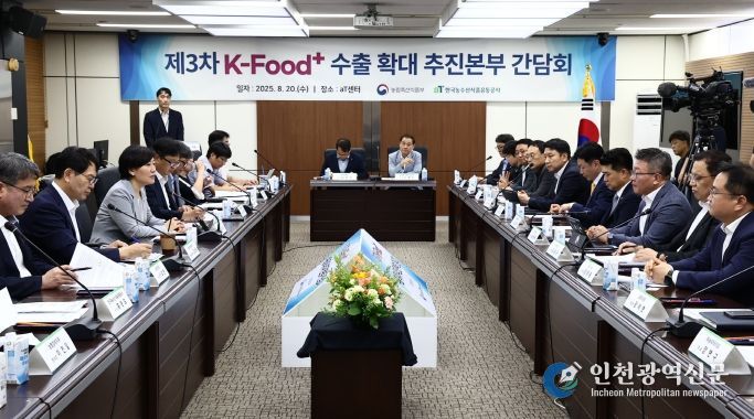 [인천광역신문] 관리자 기자 | 농림축산식품부 송미령 장관은 8월 20일, 서울 에이티(aT) 센터에서 주요 농식품 및 농산업 수출기업, 유관기관과 함께 2025년 제3차'케이-푸드 플러스(K-푸드+) 수출확대 추진본부 간담회'를 개최했다.