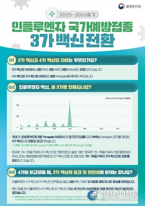 [인천광역신문] 관리자 기자 | 질병관리청은 오는 9월 22일부터 2026년 4월 30일까지 2025-2026절기 인플루엔자 국가예방접종을 시작할 계획이라고 밝혔다.