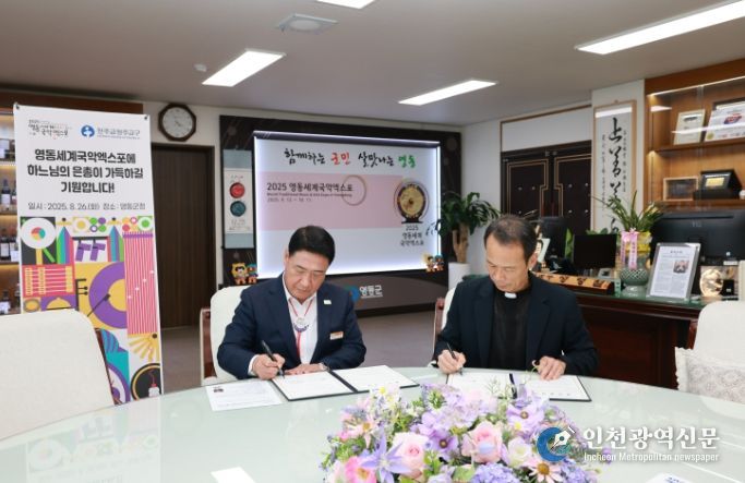 [인천광역신문] 관리자 기자 | 025영동세계국악엑스포 조직위원회는 천주교 청주교구와 26일 영동군청에서 2025영동세계국악엑스포 성공 개최를 위한 업무협약을 체결했다.