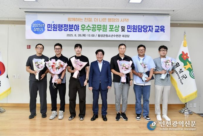[인천광역신문] 관리자 기자 | 횡성군은 28일 청소년수련관 3층 대강당에서 2025년 상반기 민원행정분야에 우수한 성과를 보인 공직자와 부서를 포상하고, 민원 응대 역량 강화를 위한 교육을 실시했다.