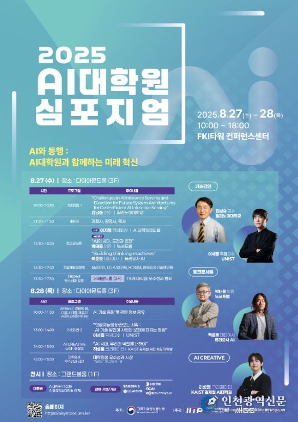 한편, 오늘 간담회가 열린 2025 인공지능 대학원 학술대회(심포지엄)는 “인공 지능과 동행 : 인공 지능 대학원과 함께하는 미래 혁신”이라는 주제로 8.27(수)∼28(목) 이틀간 개최된다. 과기정통부가 주최하고, (사)인공지능대학원협의회, 정보통신기획평가원이 공동 주관한다.