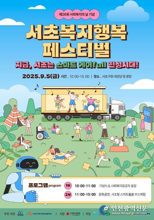 [인천광역신문] 최훈 기자 | 서울 서초구는 오는 9월 5일, 제26회 사회복지의 날을 맞아 구청 2층 대강당과 광장에서 ‘서초복지행복페스티벌’을 개최한다고 밝혔다.