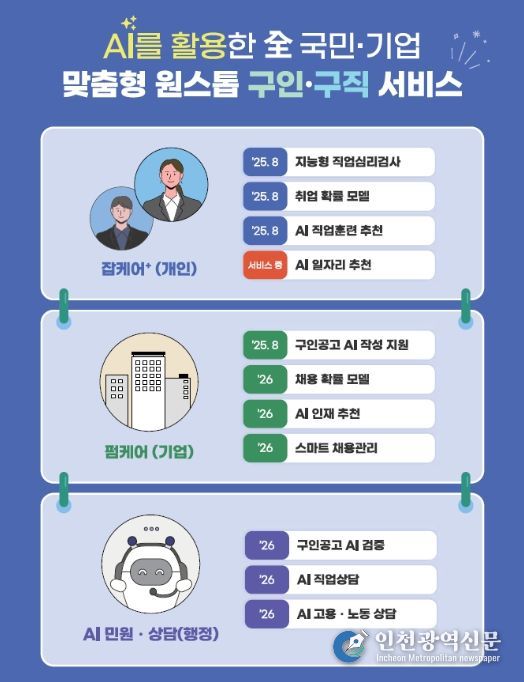 [인천광역신문] 관리자 기자 | 고용노동부는 인공지능(AI)을 활용한 국민 맞춤형 고용서비스와 근로감독 혁신을 본격 추진한다.