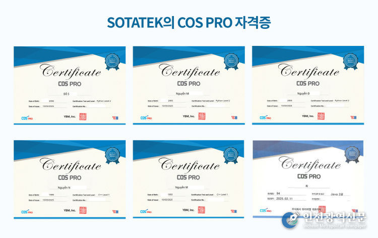 [인천광역신문] 관리자 기자 | 기술 시장이 점점 더 높은 전문성과 표준화된 품질을 요구하는 가운데, 베트남의 선도적인 기술 기업인 소타텍(SotaTek)은 YBM의 COSPRO(Coding Specialist Professional) 평가 프로그램을 통해 한국의 코딩 기준을 자사 엔지니어 팀에 최초로 적용했다. 이는 베트남 기업으로는 처음으로 한국의 전문 평가 시스템을 내부 교육 및 테스트 과정에 통합하여, 한국 파트너들의 기대에 부응하려는 적극적인 노력의 일환이다.