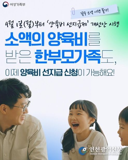 [인천광역신문] 관리자 기자 | 9월 1일(월)부터 '양육비 선지급제' 개선안 시행.