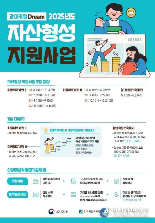 [인천광역신문] 최훈 기자 | 서울 용산구는 생계·의료급여 수급 가구의 근로 의지를 북돋우고 자립 기반을 마련할 수 있도록 돕는 ‘희망저축계좌Ⅰ’ 3차 신규 가입자를 9월 1일부터 12일까지 모집한다고 밝혔다.