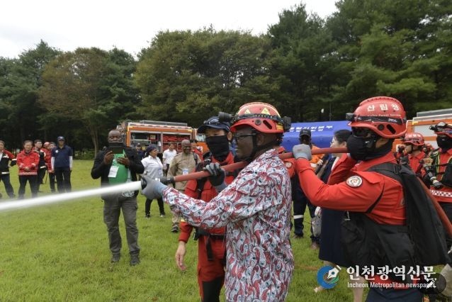 [인천광역신문] 관리자 기자 | 산림청 중부지방산림청은 지난 2일 세종 금남면 일대에서 콩고민주공화국 산림관련 공무원과 민간 전문가 등을 대상으로 실제 상황을 방불케 하는 현장감 있는 산불진화전술을 선보였다고 밝혔다.