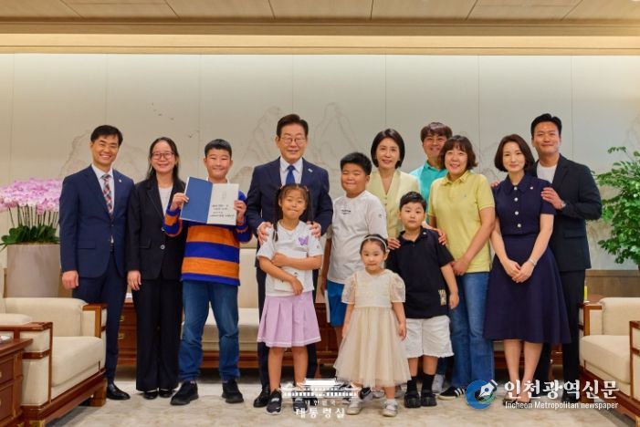 [인천광역신문] 관리자 기자 | 4일 오전 이재명 대통령과 김혜경 여사는 대통령에게 직접 손편지를 써서 보낸 어린이 세 명과 그 가족들을 대통령실로 초청했다.
