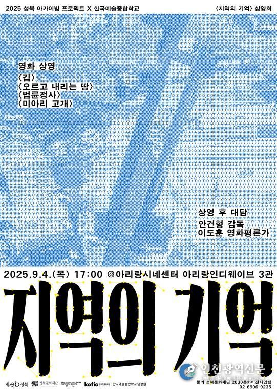 [인천광역신문] 최훈 기자 | 서울 성북구가 한국예술종합학교 영상원과 2024년부터 추진해 온 ‘지역의 기억 아카이빙 프로젝트’가 결실을 맺었다. 구는 4일 아리랑시네센터에서 ‘2025 성북 아카이빙 프로젝트 '지역의 기억' 상영회’를 개최해 4편의 신작 다큐멘터리를 첫 공개했다.