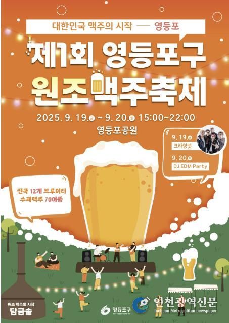[인천광역신문] 최훈 기자 | 영등포구가 9월 19일부터 20일까지 대한민국 최초의 맥주 공장 터였던 영등포공원에서 ‘제1회 원조맥주 축제’와 함께 구민 노래자랑 결승전을 개최한다고 밝혔다.