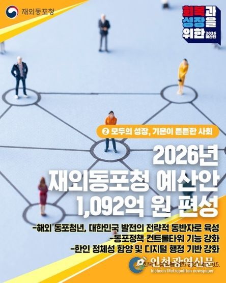 [인천광역신문] 관리자 기자 | 2026년 재외동포청 예산안 1,092억 원 편성