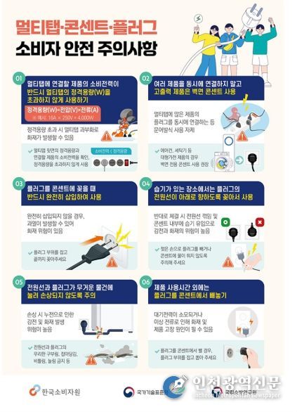 [인천광역신문] 관리자 기자 | ① 멀티탭에 연결할 제품의 소비전력이 반드시 멀티탭의 정격용량(W)을 초과하지 않게 사용하기