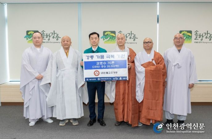 [인천광역신문] 관리자 기자 | 대한불교조계종 아름다운동행과 대한불교조계종사회복지재단은 지난 8일 가뭄 위기로 어려움을 겪고 있는 강릉시를 찾아 생수(2L) 35,000병을 기탁했다.
