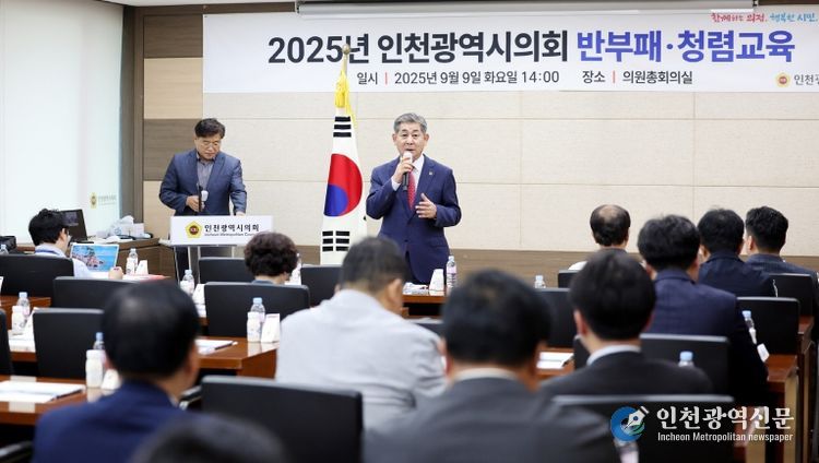[인천광역신문] 관리자 기자 | 인천광역시의회는 9일 인천시의회 의원총회의실에서 청렴 문화 확산과 반부패 의지 함양을 위한 ‘2025년도 반부패·청렴 교육 및 청렴 서약식’을 실시했다.