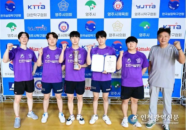 [인천광역신문] 최예준 기자 | 인천시설공단 탁구선수단은 지난 10일 경북 영주에서 열린 '2025 내셔널 컵 실업탁구대회'에서 전국 각지의 강팀들과 실력을 겨루며 단체전 은메달과 혼합 복식 동메달을 동시에 획득하는 쾌거를 이뤘다.