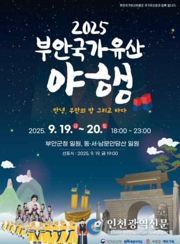 [인천광역신문] 관리자 기자 | 부안군은 오는 19일~20일 국가민속유산으로 지정된 동문안·서문안 당산을 비롯한 당산유산 밀집구역에서 ‘2025 부안국가유산 야행’이 오후 6시부터 밤 11시까지 진행된다.