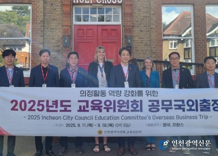 영국 출장에서는 교육위원회 의원 6명 등 총 10명의 대표단이 참여하며, 홀리크로스 스쿨, 뉴 몰든 공공도서관 등을 방문했다. 각 기관 방문으로 교육 혁신과 지역사회 중심 학습 모델을 직접 체험하고, 우수 사례를 인천 교육정책에 반영할 예정이다.