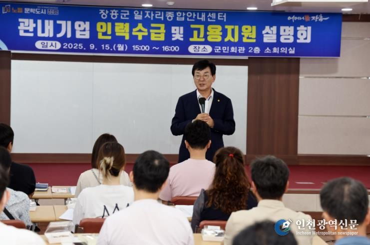 [인천광역신문] 관리자 기자 | 장흥군은 지난 15일 군민회관에서 지역 기업 대표와 채용 담당자가 참석한 가운데 ‘기업 인력수급 및 고용지원 설명회’를 열었다.