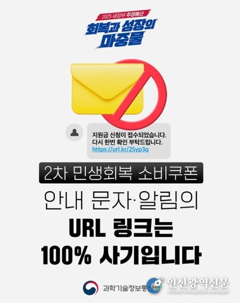 [인천광역신문] 관리자 기자 | 2차 민생회복 소비쿠폰 안내 문자·알림의 URL 링크는 100% 사기입니다.