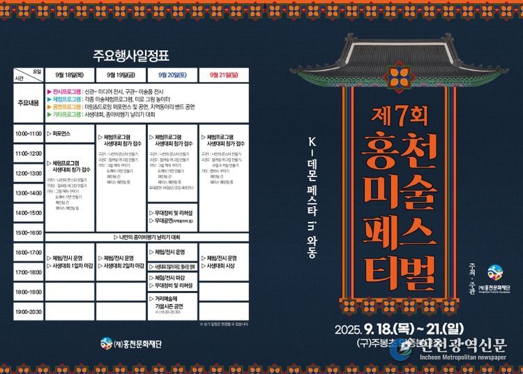 [인천광역신문] 관리자 기자 | 홍천군과 홍천문화재단은 오는 9월 18일부터 21일까지 홍천미술관 와동분관에서(구 와동분교) 케이 데몬을 재해석한 문화예술 행사 및 제7회 홍천미술페스티벌을 개최한다.