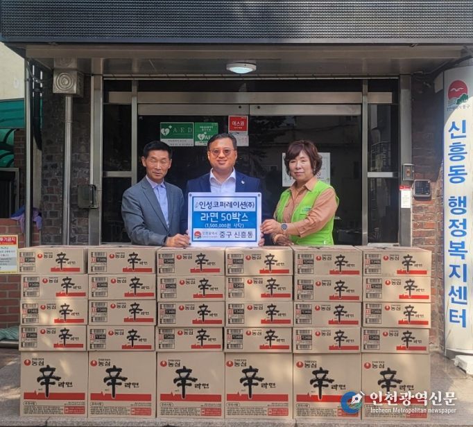 [인천광역신문] 최예준 기자 | 인천 중구 신흥동 지역사회보장협의체(공동위원장 함혜경, 심규홍)는 지난 15일 인성코퍼레이션㈜(대표 추성호)로부터 라면 50박스를 전달받았다고 밝혔다.