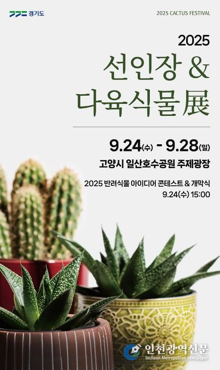 [인천광역신문] 관리자 기자 | 가을 나들이에 특별한 즐길 거리를 찾는다면 희귀 선인장과 다육식물을 한자리에서 만날 기회가 열린다. 경기도농업기술원은 영농조합법인 선인장연구회, (재)고양국제박람회재단과 함께 24일부터 28일까지 고양시 일산호수공원 주제광장에서 ‘2025 선인장·다육식물展’을 개최한다고 18일 밝혔다.