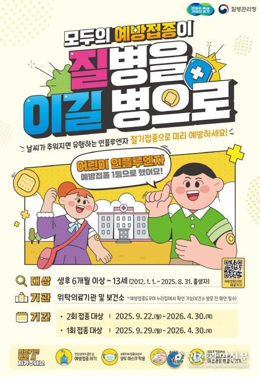 인플루엔자는 2회 접종 대상 어린이를 시작으로 9월 22일부터 실시한다. 이후 9월 29일부터는 1회 접종 대상 어린이와 임신부, 10월 15일부터는 75세 이상 어르신부터 연령대별로 순차 접종이 가능하다.
