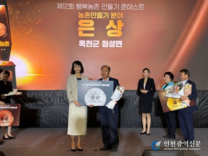 [인천광역신문] 관리자 기자 | 옥천군 청성면이 지난 17일 과천 한국마사회 경마공원에서 열린 농림축산식품부 주최 ‘제12회 행복농촌만들기 콘테스트’에서 농촌만들기 분야 장관상(은상)을 차지해 상금 15,000만 원을 받았다.