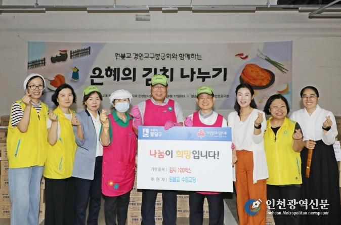 [인천광역신문] 관리자 기자 | 원불교 수원교당은 지난 17일, 수원시 팔달구(구청장 이상균)에 김치 100박스를 기부했다.