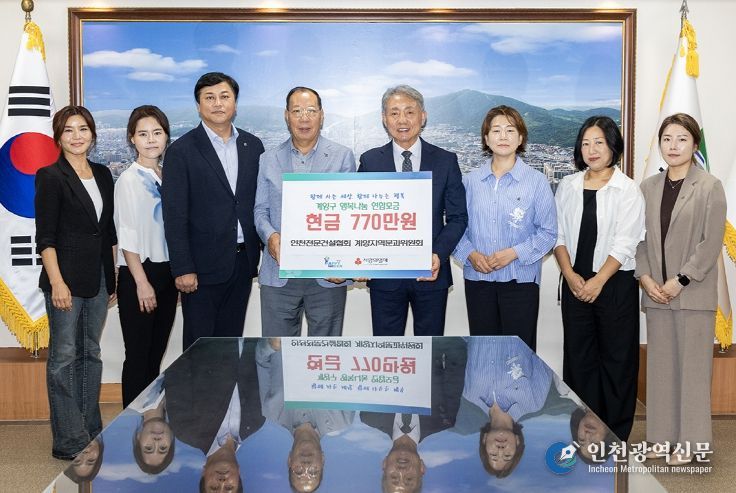 [인천광역신문] 최예준 기자 | 인천광역시 계양구는 9월 17일, 인천전문건설협회 계양지역분과위원회에서 기후위기 취약계층을 지원을 위해 성금 770만 원을 기탁했다고 밝혔다.