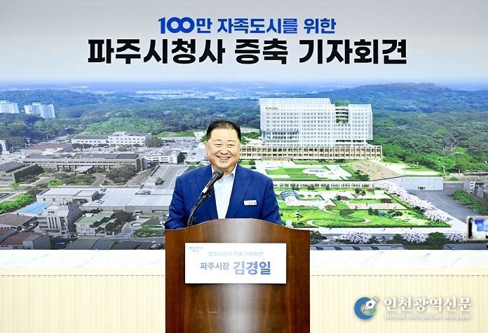 [인천광역신문] 관리자 기자 | 김경일 파주시장은 18일 기자회견을 열고 효율과 실용을 원칙으로 한 ‘파주시 시청사 증축 건립 계획’을 발표했다.