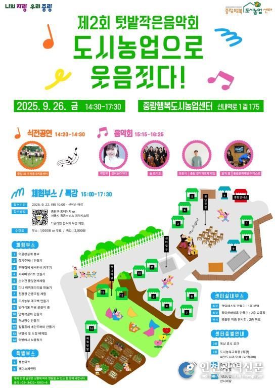 오는 9월 26일 금요일에 열리는 ‘제2회 텃밭작은음악회’도 센터 누리집을 통해 자세한 내용을 확인할 수 있다. 이번 행사는 도시농업의 가치를 널리 알리고, 구민들이 함께 소통하고 즐기는 시간을 제공하기 위해 마련됐다.