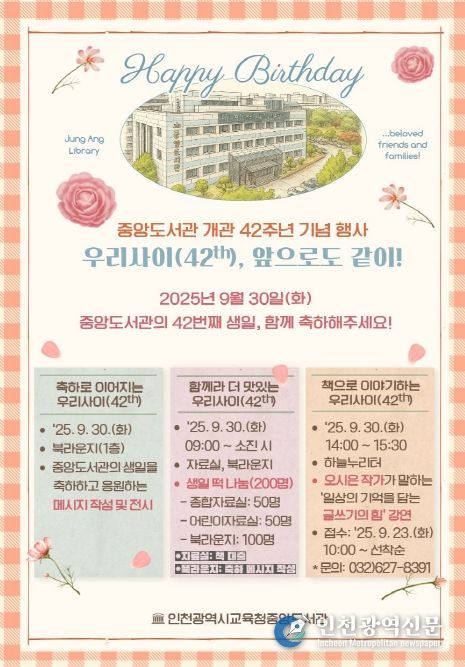 [인천광역신문] 최예준 기자 | 인천광역시교육청중앙도서관은 개관 42주년을 맞아 9월 30일에 기념행사를 개최한다.