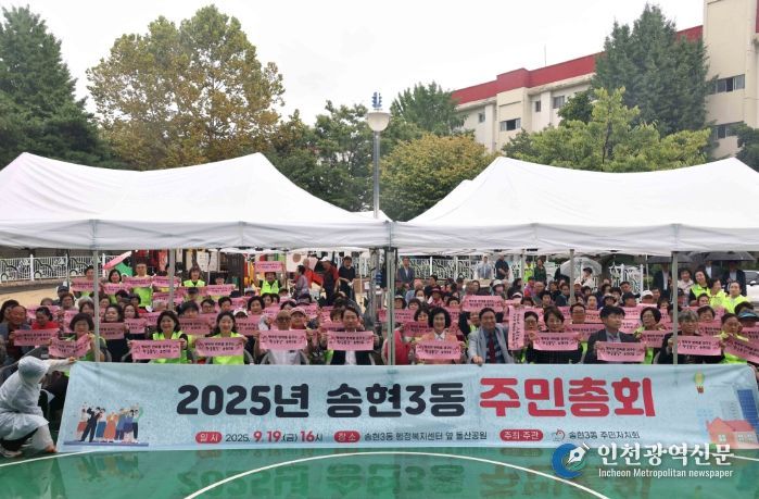 [인천광역신문] 최예준 기자 | 인천 동구 송현3동 주민자치회(회장 신흥균)는 지난 19일 돌산공원에서 2025년 주민총회를 개최하고, ‘2026년도 자치계획’을 확정했다고 밝혔다.