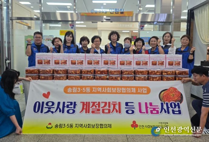 [인천광역신문] 최예준 기자 | 인천 동구 송림3・5동 지역사회보장협의체(민간위원장 정순자)는 지난 19일 지역 내 취약계층 60세대에 대한 ‘이웃사랑 계절김치 나눔사업’을 진행하였다고 밝혔다.
