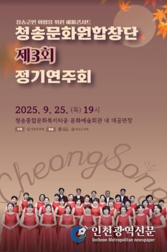 [인천광역신문] 관리자 기자 | 청송군은 오는 9월 25일 목요일 오후 7:00부터 청송문화예술회관 대공연장에서‘청송문화원합창단 제3회 정기연주회’를 개최한다고 밝혔다.