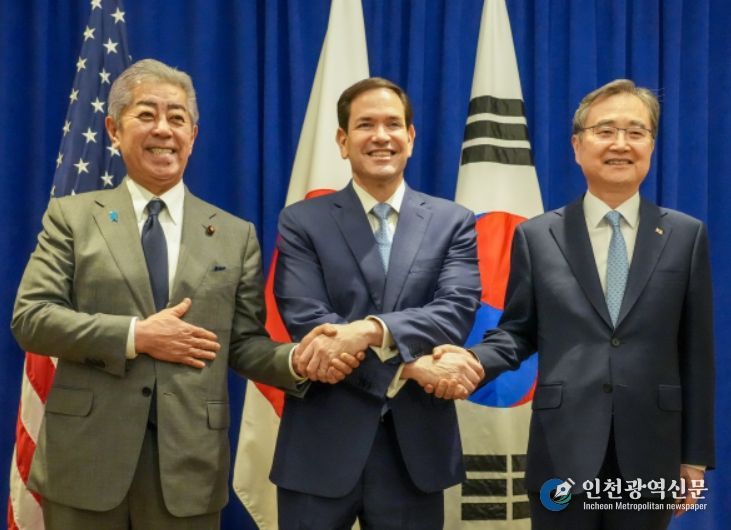 [인천광역신문] 관리자 기자 | 제80차 유엔총회 고위급 회기 참석 차 뉴욕을 방문중인 조현 장관은 마르코 루비오(Marco Rubio) 미국 국무장관 및 이와야 다케시(岩屋毅) 일본 외무대신과 9월 22일 한미일 외교장관회의를 갖고, 한반도 및 지역 현안과 한미일 3국 간 경제안보 협력 증진 방안 등에 대해 논의하고 공동성명을 채택했다.