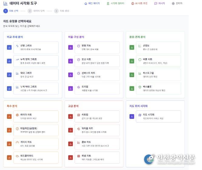 아울러 ‘AI 차트 추천 서비스’도 새롭게 도입했다. 이는 구에서 자체 개발한 기능으로, 엑셀 파일을 올리면 AI가 자동으로 데이터를 분석해 적절한 그래프를 추천하고 차트도 만들어 주는 서비스다. 21종의 그래프 예제를 제공하는 ‘시각화 갤러리’, 클릭 한 번으로 고품질 차트를 만드는 ‘시각화 생성 서비스’, 색상·레이블 등 개인 맞춤형 변경과 다운로드 기능도 지원한다. 향후, AI가 데이터 해석 코멘트까지 자동 생성하는 기능도 추가될 예정이다. 이를 통해 행정 보고서 작성과 의사결정이 한층 빨라지고, 부서 간 업무 기준도 표준화될 것이라고 구 관계자는 전했다.