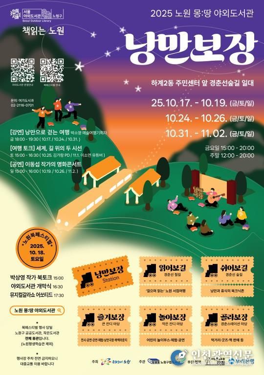 [인천광역신문] 최훈 기자 | 서울 노원구는 올가을, 시민들의 일상 속에 특별한 낭만을 불어넣는 ‘노원 몽:땅 야외도서관 : 낭만보장(場)’을 개최한다고 밝혔다.