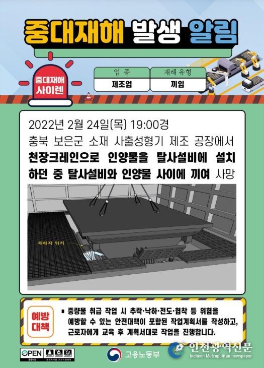 [인천광역신문] 관리자 기자 | 고용노동부는 9월 24일, '중대재해 처벌 등에 관한 법률'에 따라 중대산업재해 발생 사실을 관보(고용노동부 공고 제2025-329호)와 고용노동부 누리집을 통해 공표했다.