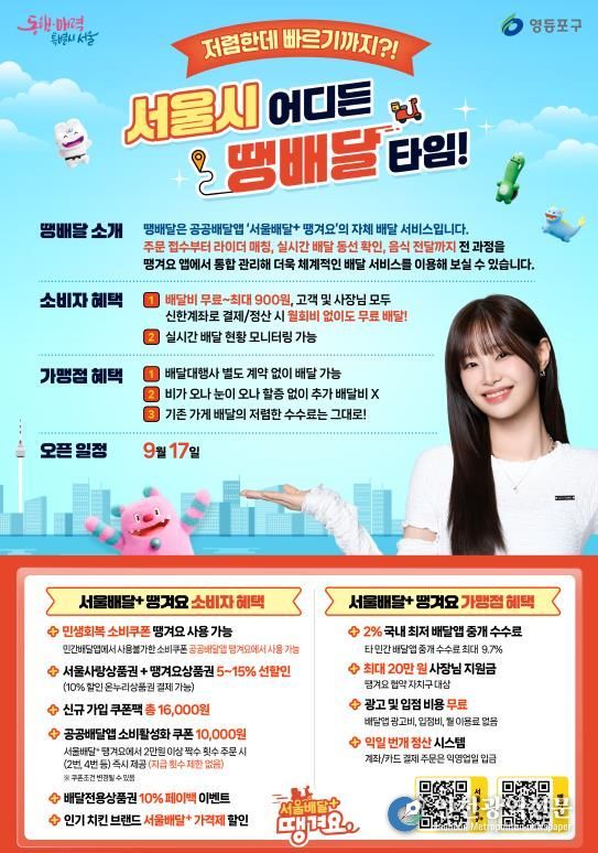 최호권 영등포구청장은 "'땡배달'은 소상공인과 소비자 모두의 비용 부담을 해소하고, 지역 경제에 활력을 불어넣는 착한 배달 서비스”라며 “영등포 구석구석을 누비며 행복을 전하는 한 끼 친구로 자리 잡길 기대한다”라고 전했다.