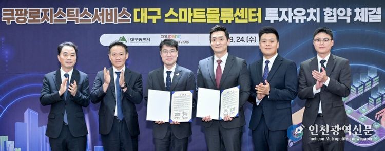 [인천광역신문] 관리자 기자 | 대구광역시는 9월 24일 오후 4시 30분, 시청 동인청사 2층 상황실에서 국내 택배부문 1위 기업인 ‘쿠팡로지스틱스서비스(유)’(대표 홍용준, 이하 ‘쿠팡로지스틱스서비스’)와 수성알파시티 내 첨단 스마트물류센터 구축을 위한 투자유치 협약을 체결했다.