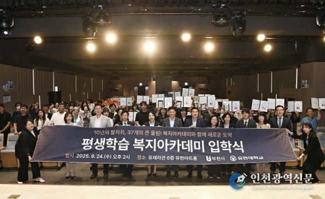 [인천광역신문] 관리자 기자 | 부천시는 지난 24일 유한대학교에서 ‘부천시·유한대학교 복지아카데미’ 입학식과 업무협약식을 열었다. 이번 행사는 조용익 부천시장과 장은영 유한대학교 총장을 비롯해 37개 동 지역사회보장협의체 위원장 등 150여 명이 참석한 가운데 진행됐다.