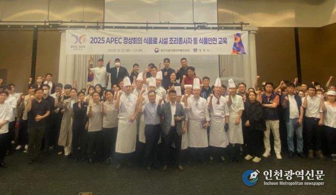 [인천광역신문] 관리자 기자 | 경주시는 2025 APEC 정상회의를 앞두고 대구지방식품의약품안전청과 협력해 지난 22일부터 23일까지 양일간 더케이호텔 경주에서 식음료시설 조리종사자를 대상으로 위생‧안전 교육을 실시했다고 밝혔다.