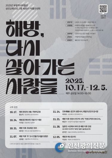 [인천광역신문] 최예준 기자 | 부평구 부평역사박물관이 ‘해방, 다시 살아가는 사람들’을 주제로 한 ‘제33기 박물관대학’ 참여자를 모집 중이라고 밝혔다.