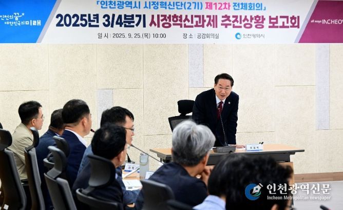 [인천광역신문] 최예준 기자 | 인천광역시는 9월 25일 시청 공감회의실에서 ‘2025년 3/4분기 시정혁신과제 추진상황 보고회’를 개최했다고 밝혔다.