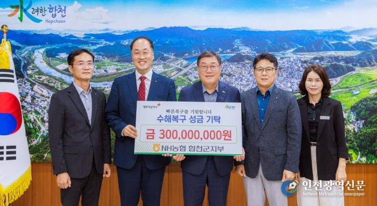 [인천광역신문] 관리자 기자 | 9월 25일 NH농협 합천군지부은 합천군청 군수실을 방문해 집중호우로 피해를 입은 이재민을 돕기 위한 성금 3억원을 기탁했다.
