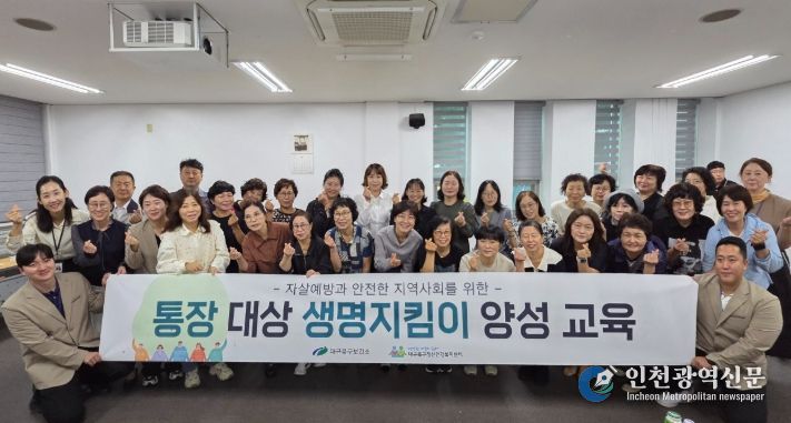 [인천광역신문] 관리자 기자 | 대구 북구보건소는 지역사회 자살예방과 생명존중 문화 확산을 위해 주민과 밀접한 접점이 있는 통장을 대상으로 생명지킴이 양성교육을 실시한다.